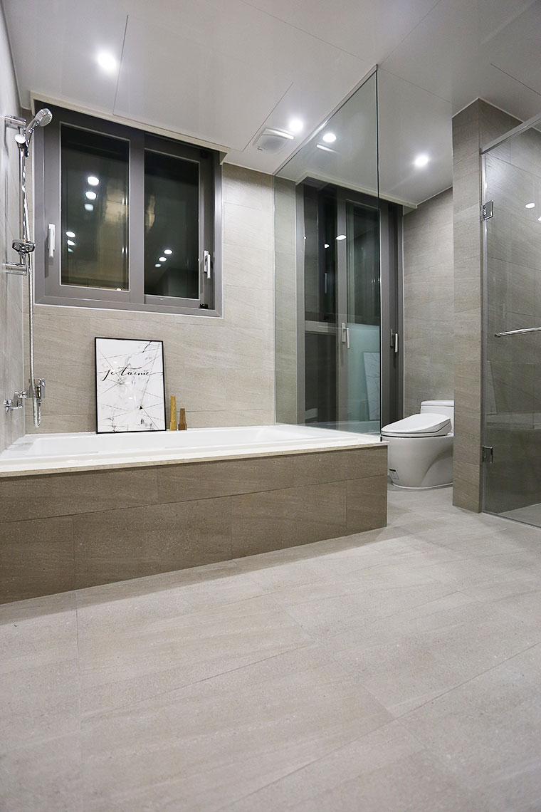 바닥과 타일에 굉장히 많은 신경을 썼습니다.