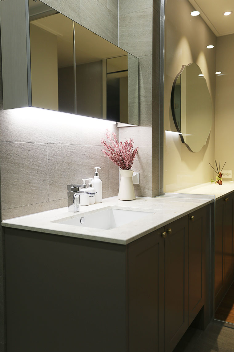 파우더룸과 세면대를 설치해서 좁은 공간의 활용도를 높여주고 있습니다.